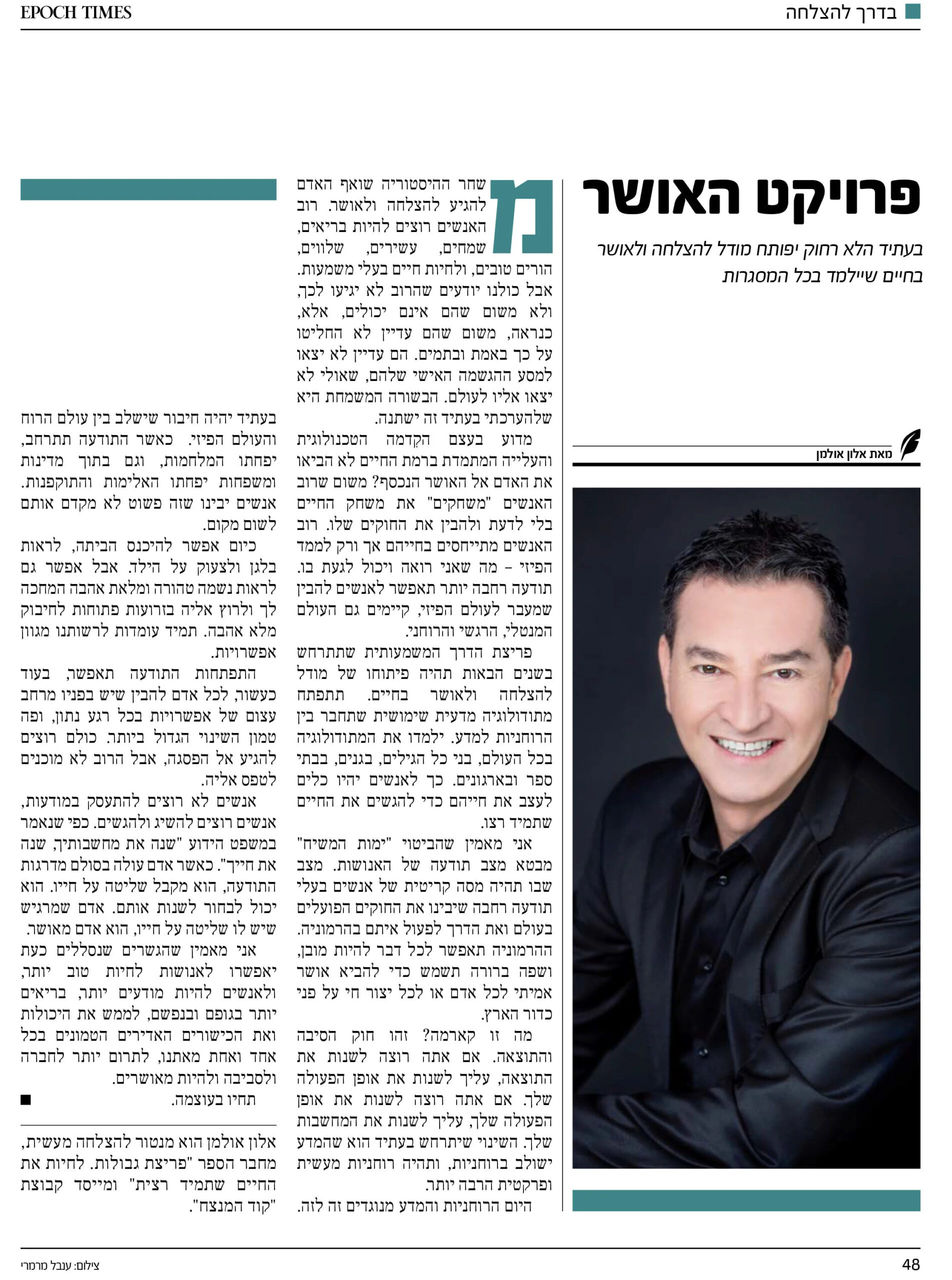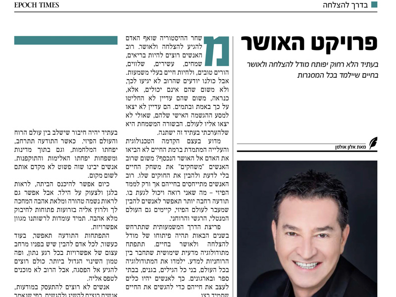 כתבה ב-EPOCH TIMES בנושא "פרויקט האושר" – מודל להצלחה ואושר בחיים